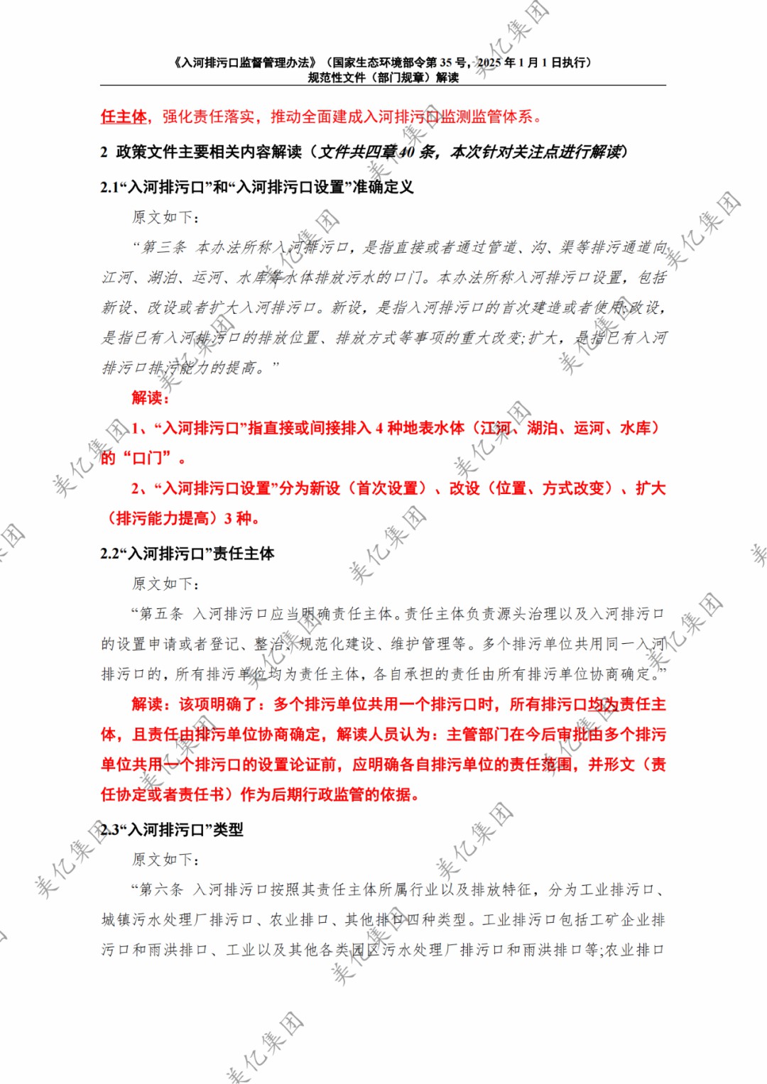 2024年11月1日,《入河排污口監(jiān)督管理辦法》(部令第35號(hào))予以公布,自2025年1月1日起施行。《入河排污口監(jiān)督管理辦法》文件內(nèi)容解讀如下: